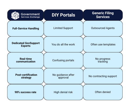 Our GovSupport Experts are a dedicated in-house team of government certification professionals. They: